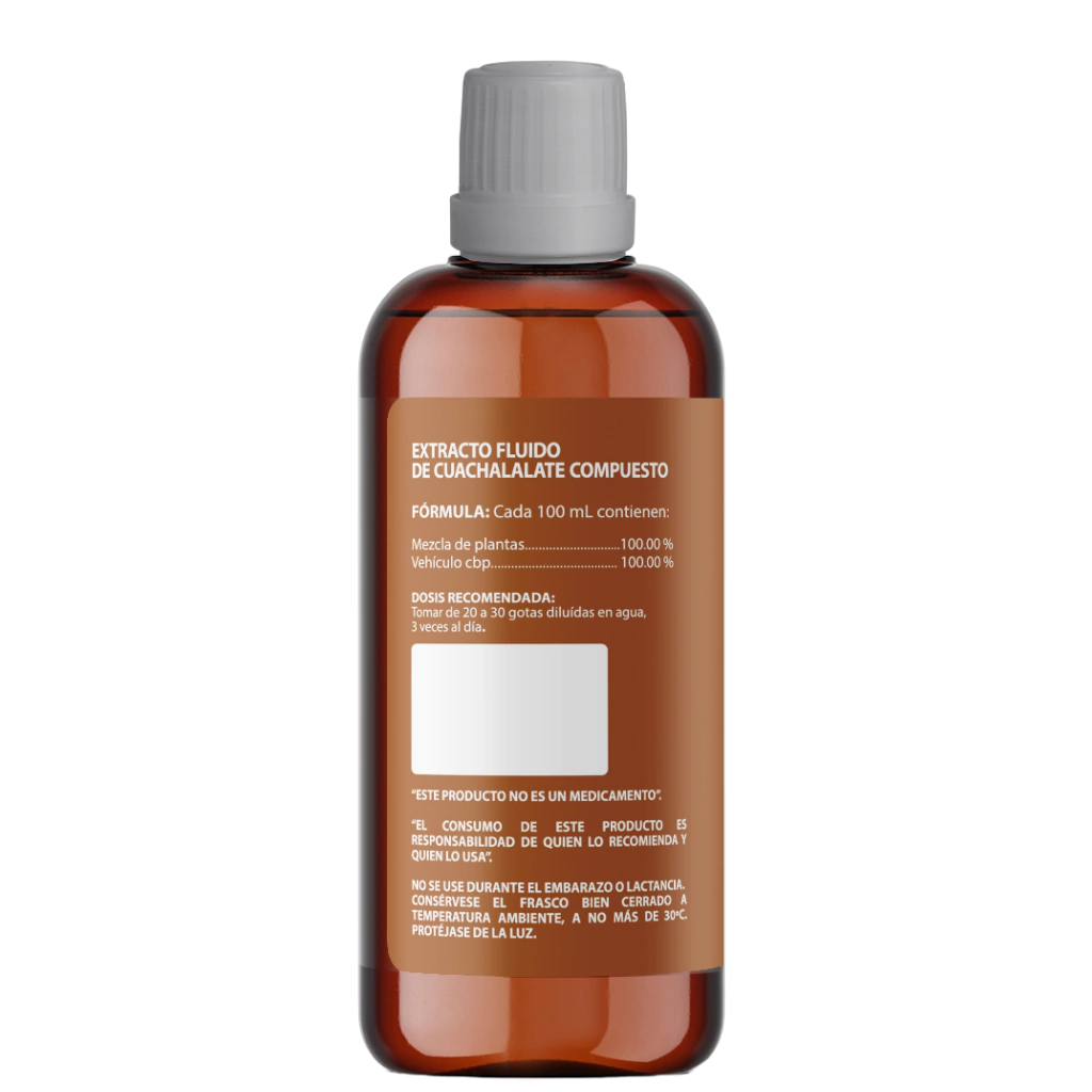 Extracto líquido de cuachalalate, 100 ml, concentrado natural, libre de conservadores y aditivos, envase con dosificador, apto para consumo diario.