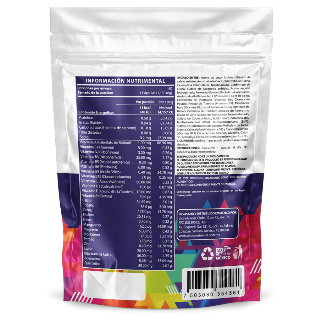 Multivitamínico Premium para Hombre 60 Cápsulas 1150 mg c/u. 26 Vitaminas y Minerales, Solo 1 Cápsula al Día, Bottle Free
